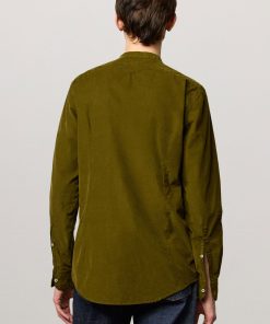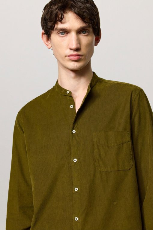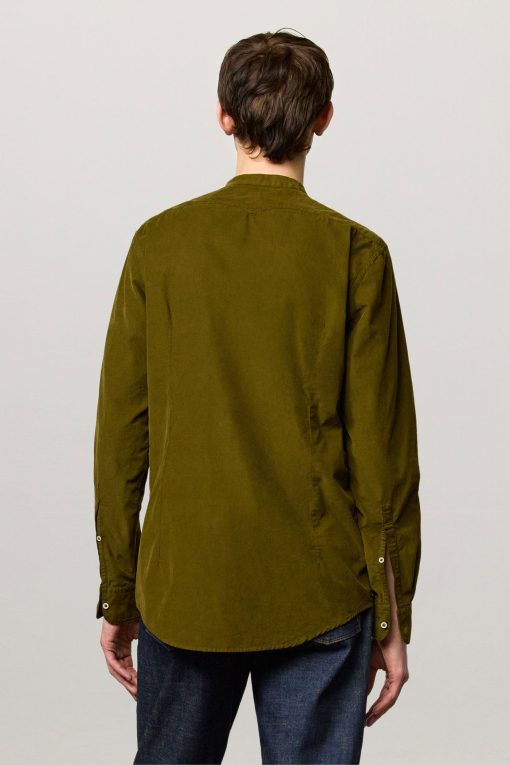 Massimo Alba Men’s Baby Corduroy Guru Collar Shirt | Military