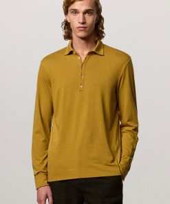 Regular-fit 5-button long-sleeve polo shirt in lightweight cotton cashmere jersey with a chest pocket and shirt cuffs. Made in Italy.