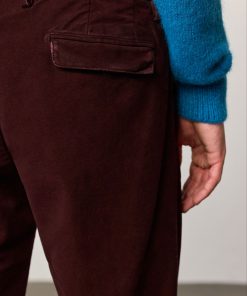 Wide-leg trousers in cotton moleskin with stitched pleats, slanted side pockets, front tab closure with dark horn buttons, concealed zip, flap pockets at the back and belt loops at the waist. Made in Italy.