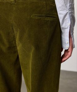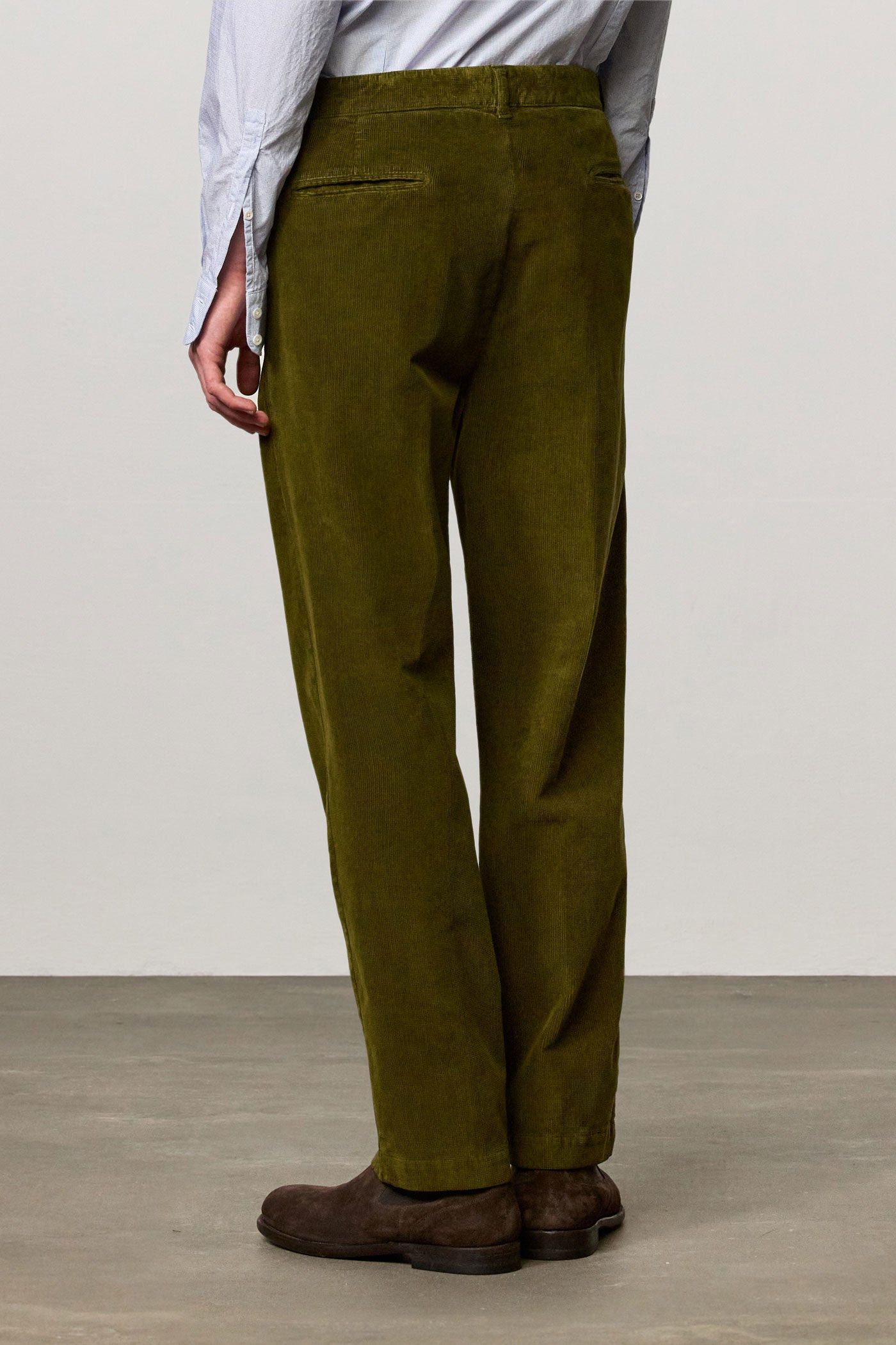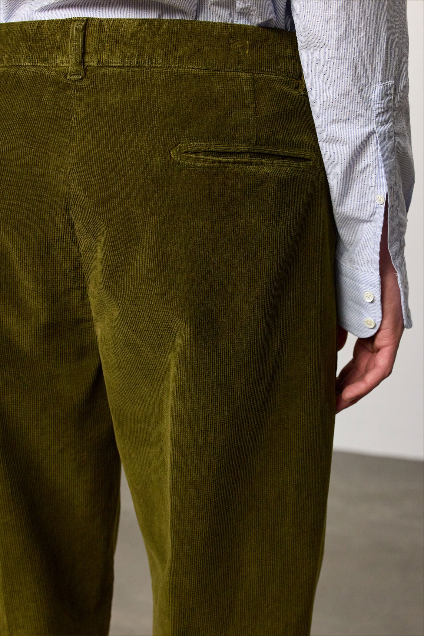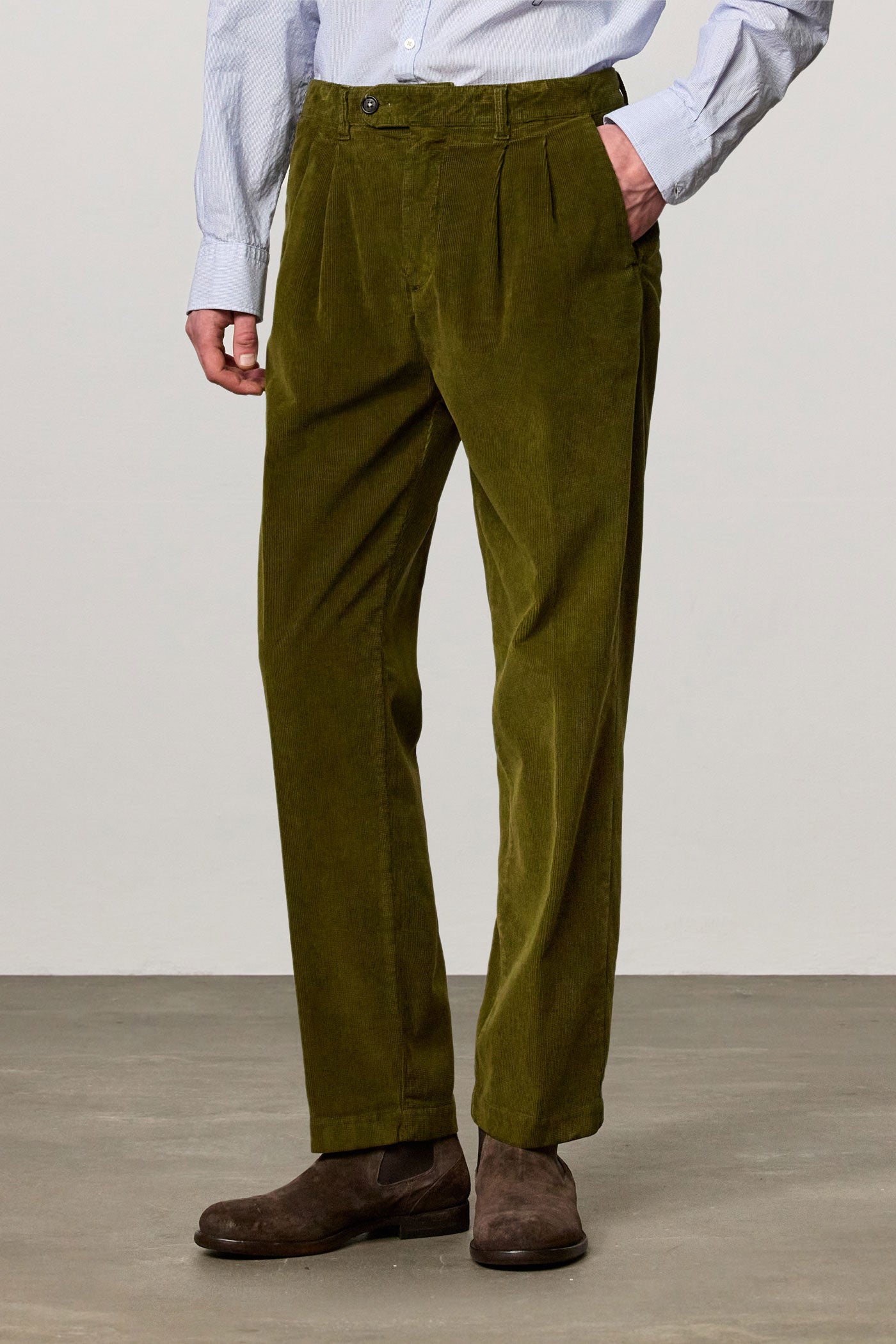 Relaxed-fit trousers with a tab waistband, double pleats and slanted side pockets. Crafted from cotton velvet. Made in Italy.