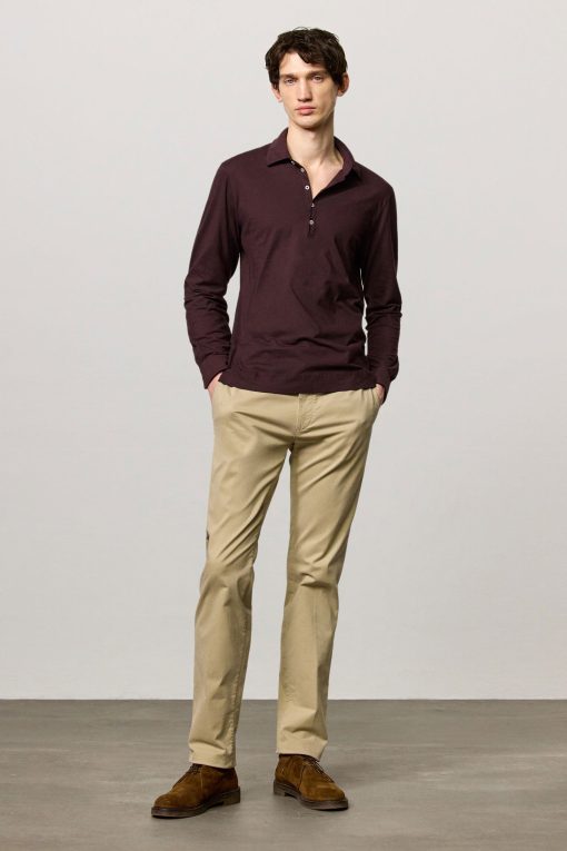 Long-sleeved polo shirt with a regular fit and five-button closure, crafted from watercolor-effect cotton. Finished with a chest pocket and shirt-style cuffs. Made in Italy.