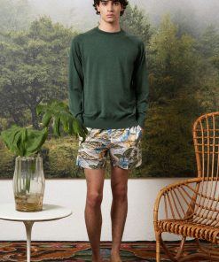 Classic fit swim shorts with drawstrings waistband, pockets and mesh slip lining. Made in two different tropical prints. Made in Italy.