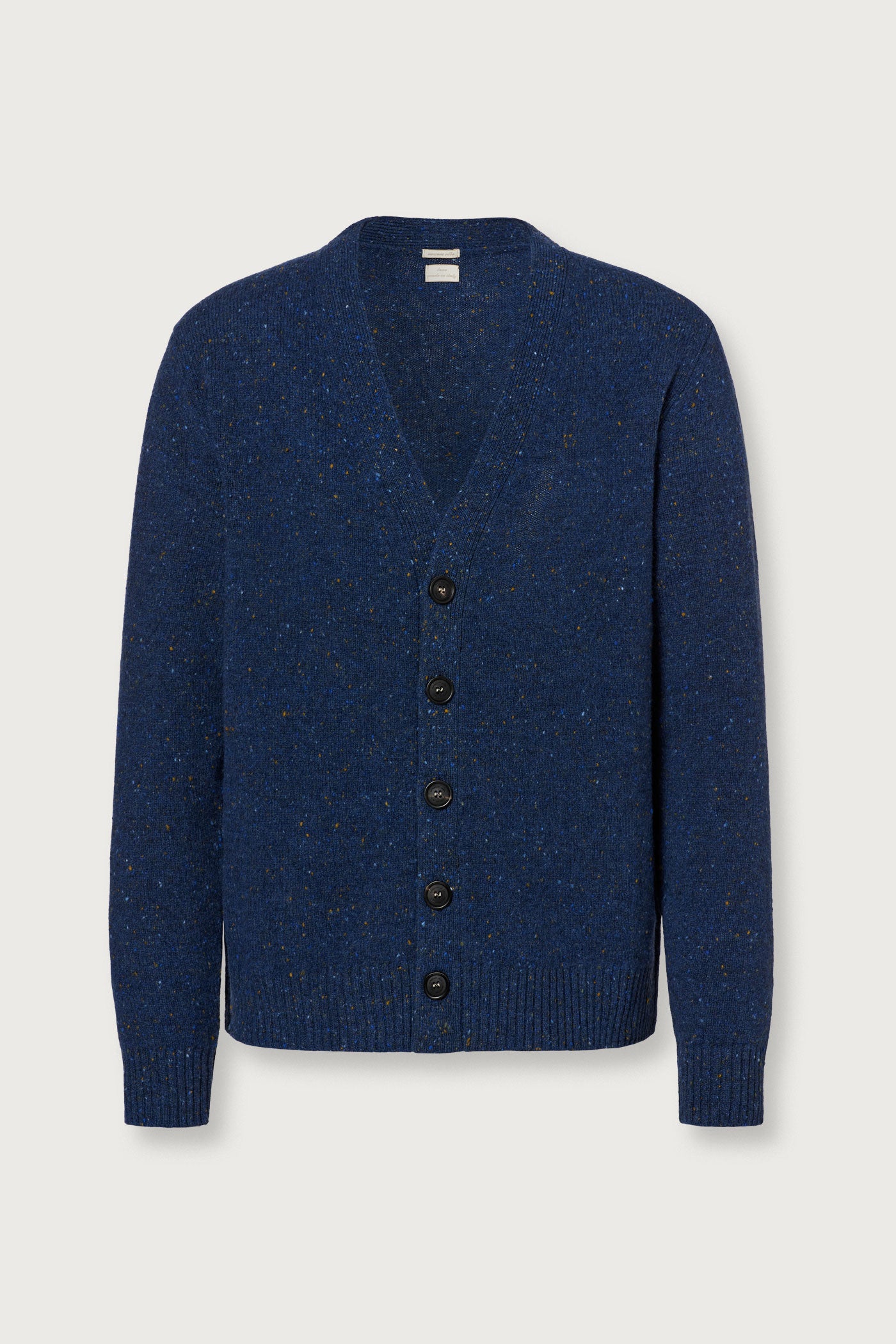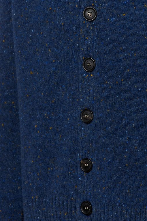 Boxy fit cardigan with four horn buttons, high flat ribbed edges. Made from soft virgin Shetland wool. Made in Italy.