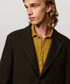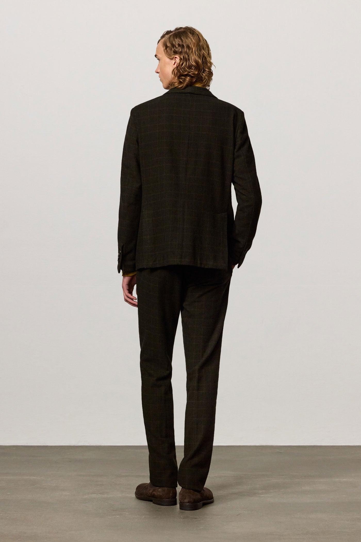 Regular-fit jacket inspired by classic tailoring. Single-breasted with notch lapels, flap pockets with a ticket pocket, and double back vents. Finished with horn buttons. Made from Prince of Wales pattern in pure virgin wool. Made in Italy.