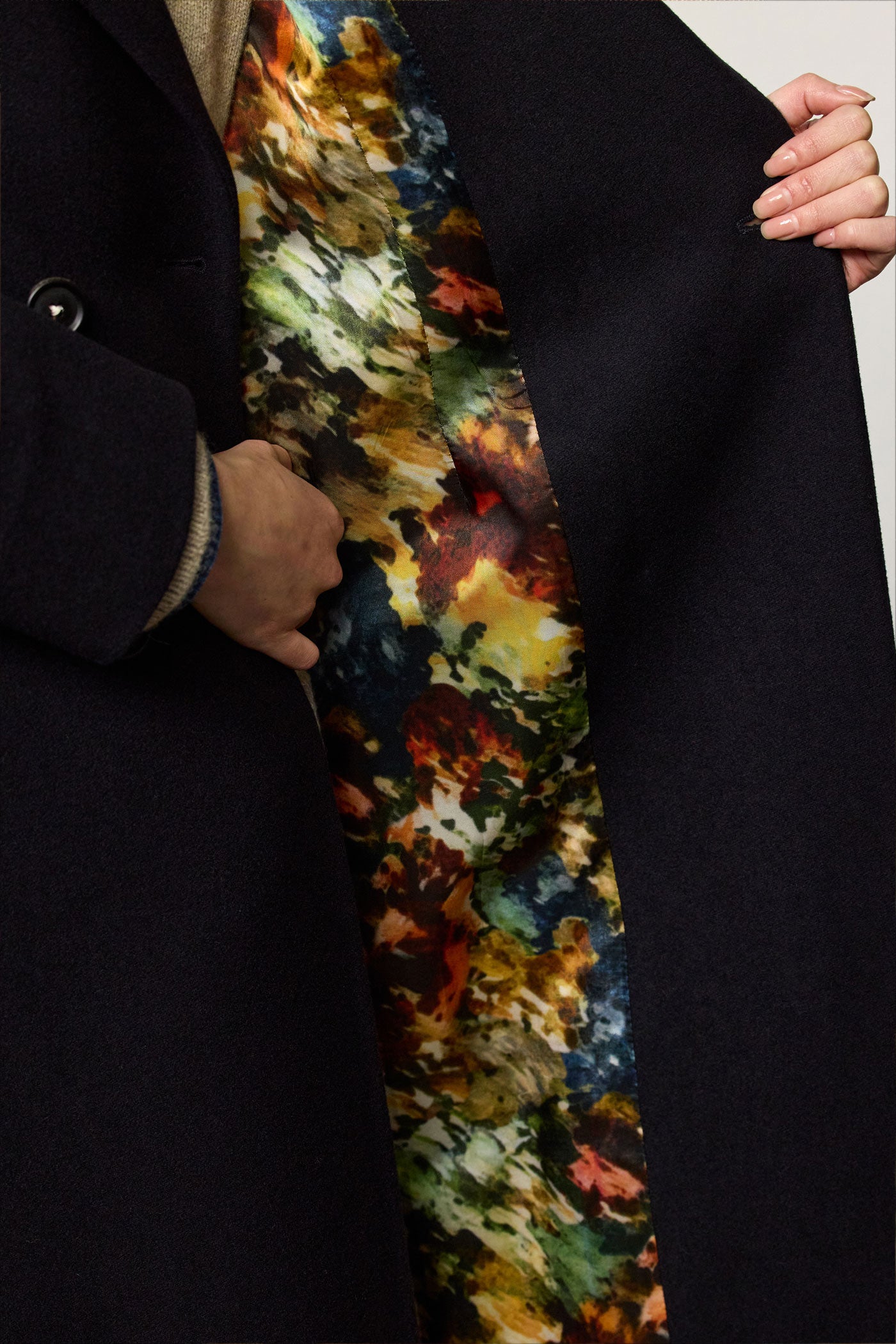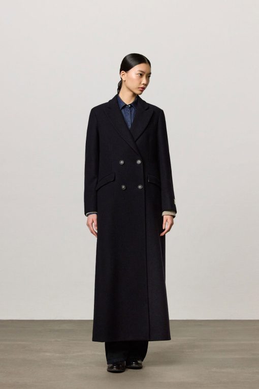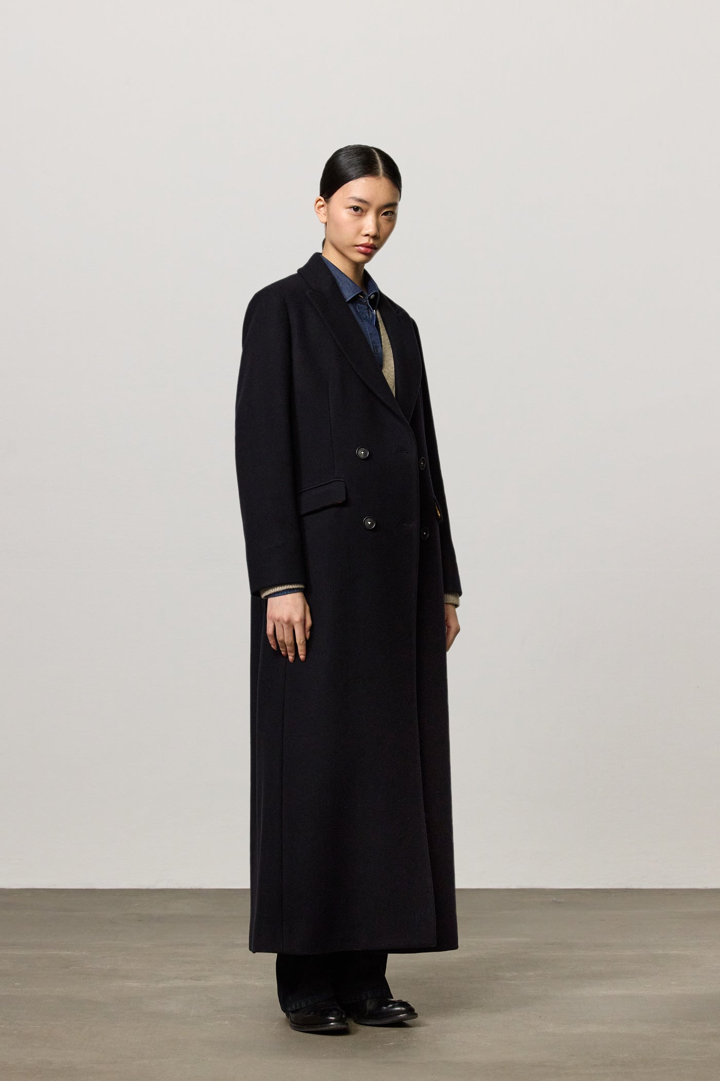 Long double-breasted summer coat, unlined, with a regular fit, flap pockets, back vent and horn buttons. Crafted from soft cashmere. Made in Italy.