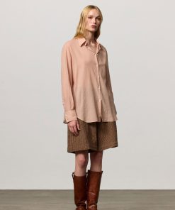 Relaxed-fit shirt with a pointed collar, back yoke, and no front placket. Made of cotton cashmere. Made in Italy.