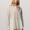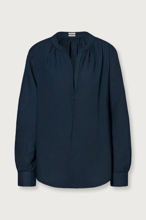 Blouse with korean collar, deep neckline, high cuffs, made of cotton cashmere voile. Made in Italy.