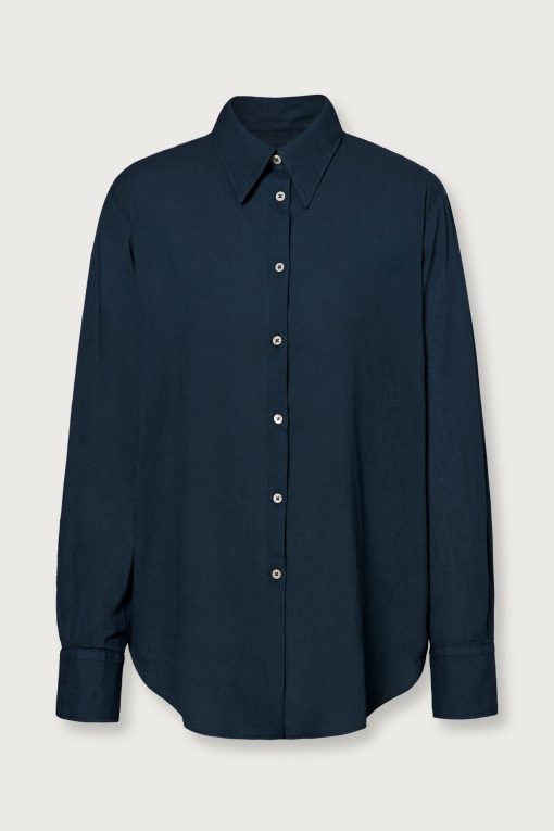 Relaxed-fit shirt with a pointed collar, back yoke, and no front placket. Made of cotton cashmere. Made in Italy.