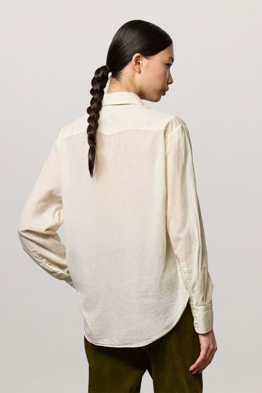 Relaxed-fit shirt with pointed collar, back yoke and no front placket. Crafted from cotton and cashmere with a watercolor effect. Made in Italy.