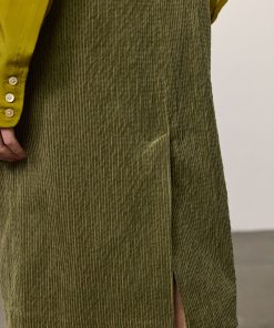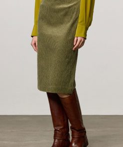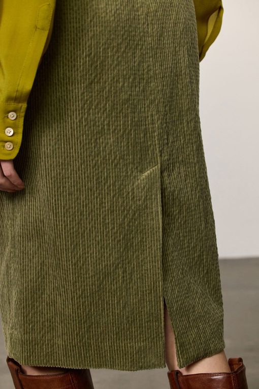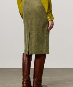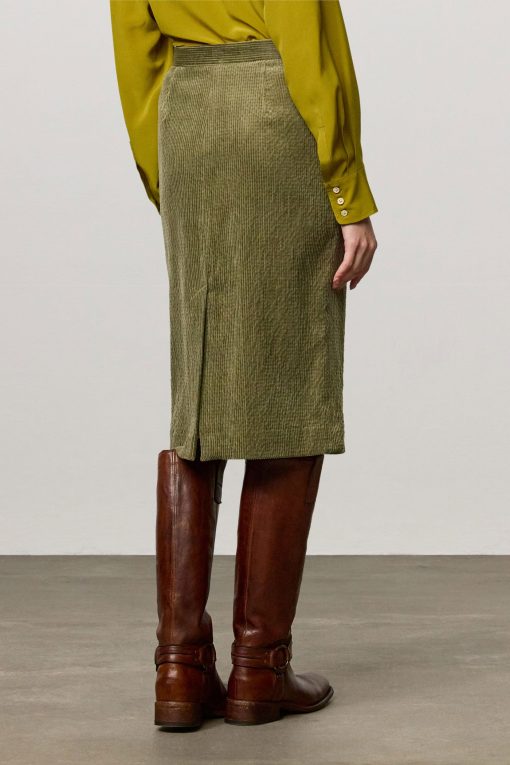 Mid-rise midi pencil skirt with side zip and back slit. Crafted from cotton corduroy with a shiny modal finish. Made in Italy.