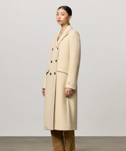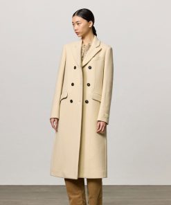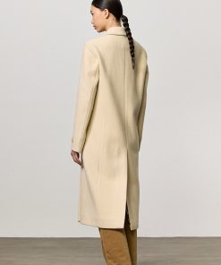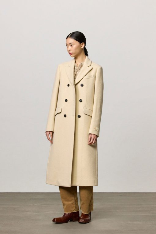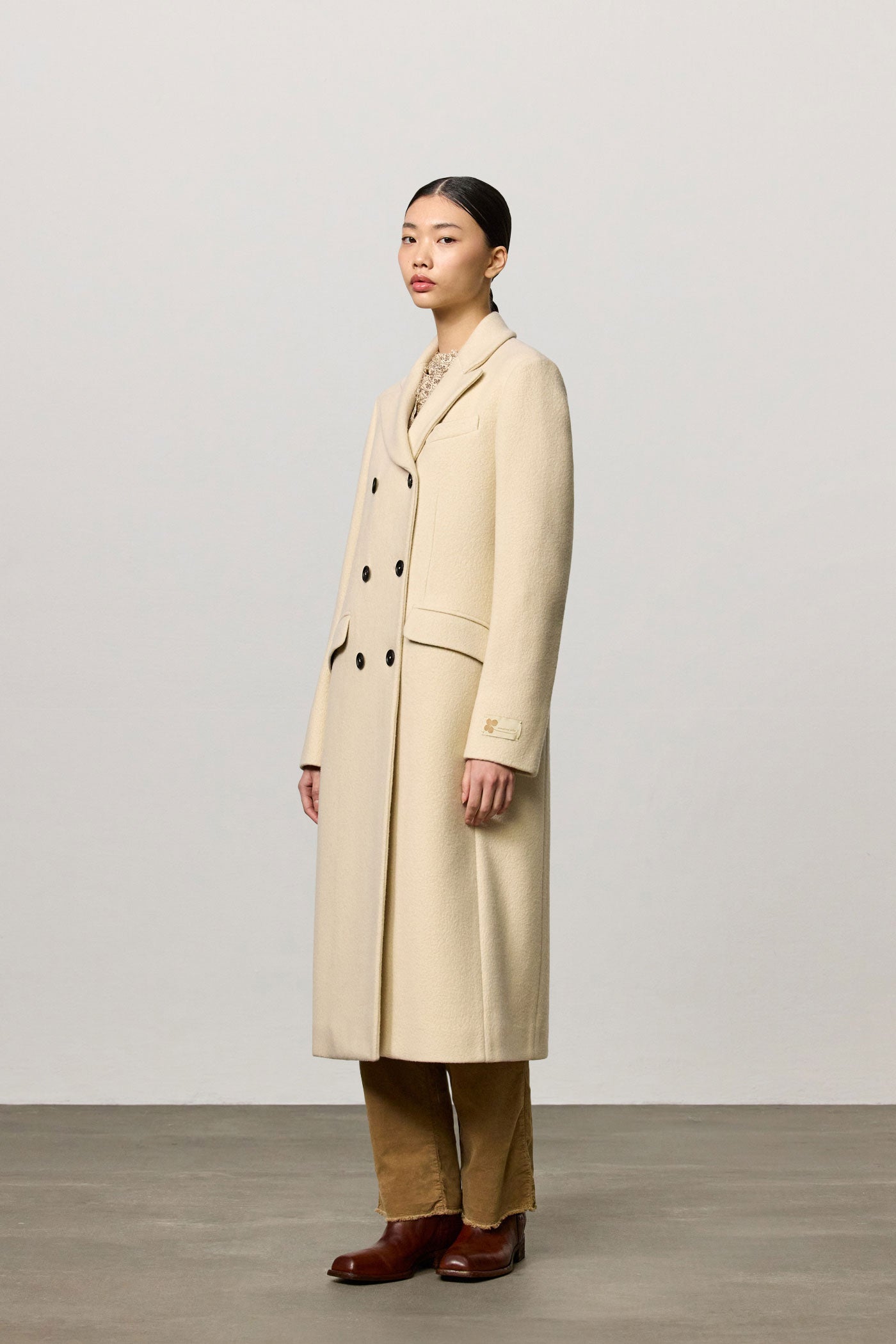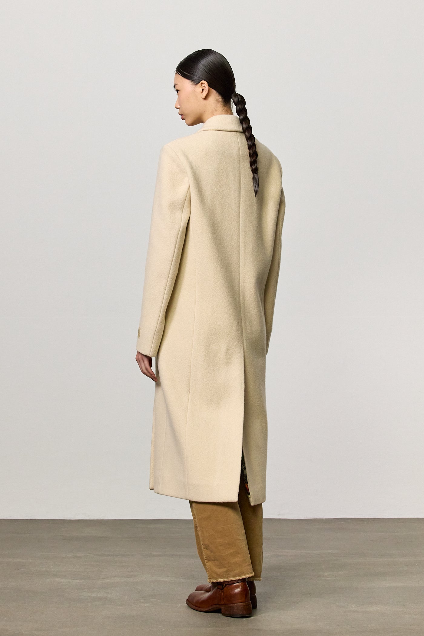 Double-breasted coat with a straight, elongated silhouette, six genuine horn buttons, peak lapels and welt pockets with flaps. Fully lined. Crafted from brushed-effect virgin wool and cashmere fabric. Made in Italy.