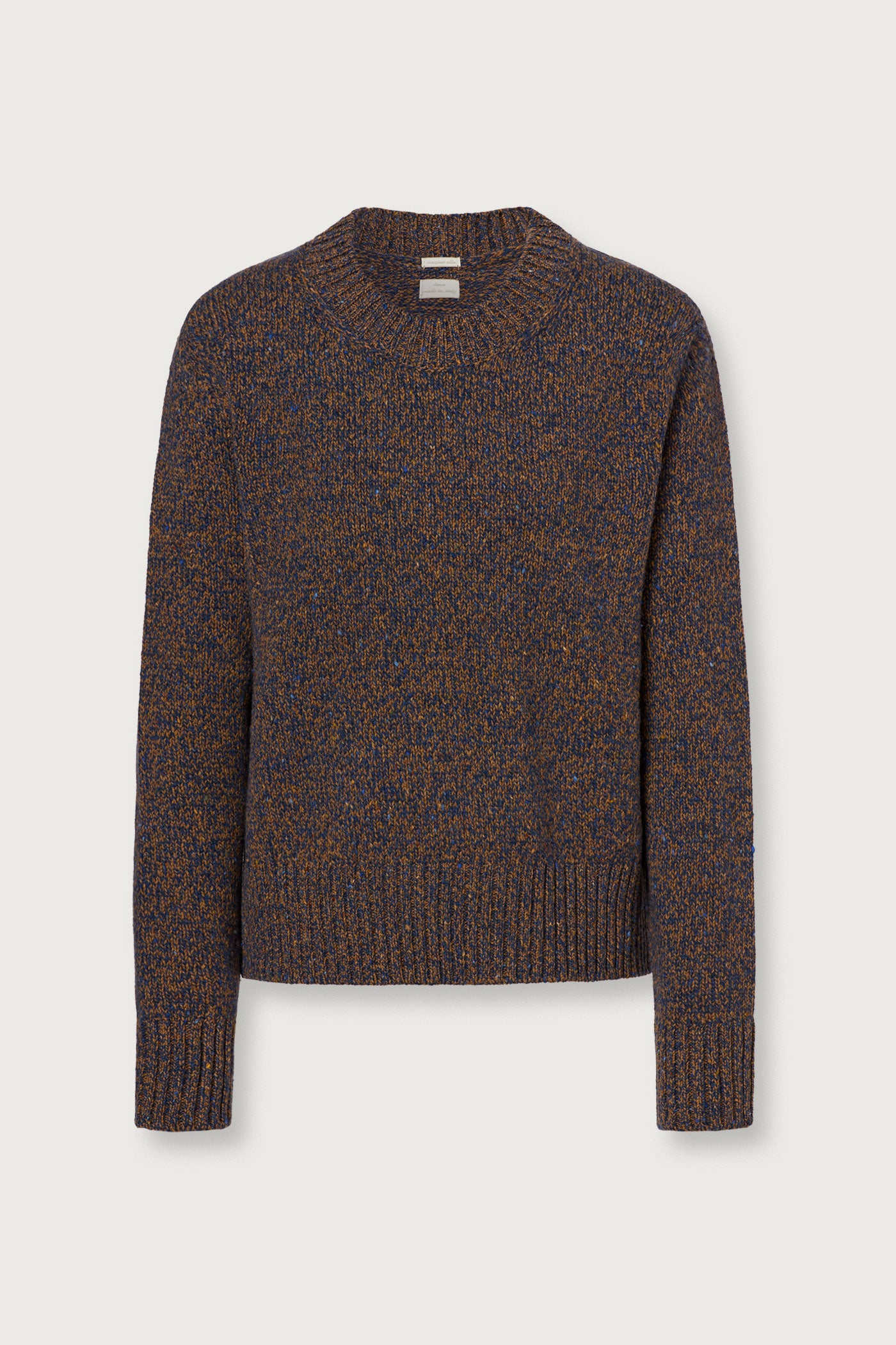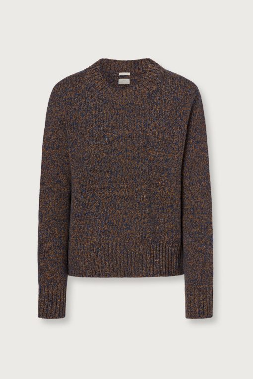 Regular fit crewneck-sweater, ribbed edges. Made in soft mouliné virgin wool. Made in Italy.