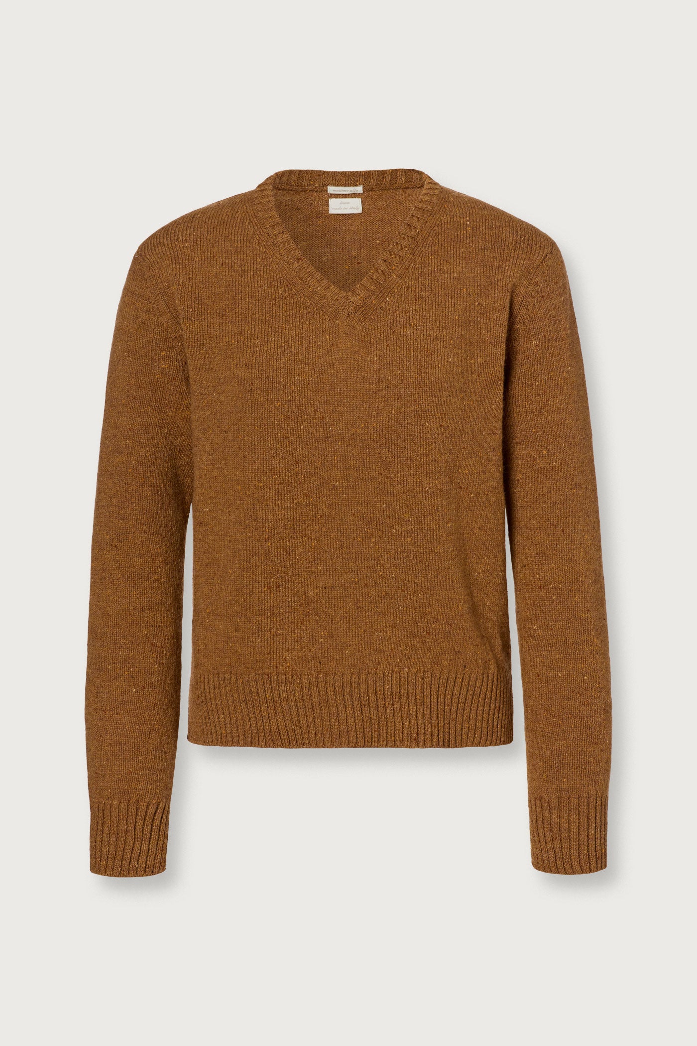 Regular-fit v-neck sweater with ribbed edges, and side slits. Made from soft virgin Shetland wool. Made in Italy.