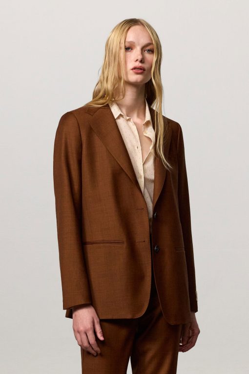 Single-breasted jacket with constructed and lined shoulders in exclusive pattern, featuring welt pockets, lance lapels, two genuine horn buttons, made of two-tone iridescent twill in virgin wool. Made in Italy.