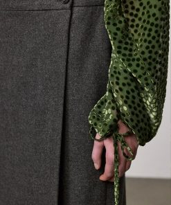 Midi pencil skirt with front slit and fastening. Crafted from melange virgin wool flannel. Made in Italy.